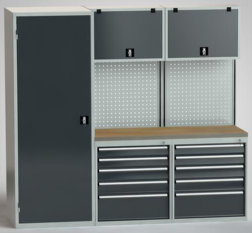 "metaDescription": "KLW Lutz System-Arbeitsplatz - HxBxT 2000x2175x630mm, 5 Schränke, 2 Lochplatten, Multiplexplatte, Stahl, RAL7035",