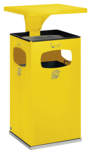 "longDescription": "<h2>Kombiascher</h2><strong>besonders robust mit verstärktem Schutzdach</strong><br><ul><li><strong>Funktional in der Benutzung</strong> durch 3 Einwurföffnungen</li><li><strong>Einfache Entleerung</strong> durch herausnehmbaren Innenbehälter und Aschereinsatz mit Sandsieb </li><li><strong>Diebstahlsicher</strong> - Schutzdach gegen das Entwenden des Aschereinsatzes verschließbar</li><li><strong>Einfache Montage</strong> - inklusive Befestigungsmaterial</li></ul><br><strong>Sie haben die Wahl:</strong><br><ul><li><strong>Auffällig oder elegant</strong> - aus Stahlblech mit farbiger Pulverbeschichtung oder aus Edelstahl</li></ul><br>Die funktionale Kombination aus Mülleimer und Aschenbecher passt sowohl in Raucherzonen als auch in Eingangsbereiche und in den ungeschützten Außenbereich. Der quadratische Kombiascher aus Stahl mit 3 Einwurföffnungen hat eine Garantie von 3 Jahren.<br><br>Durch die verzinkte und pulverbeschichtete Oberfläche hat der Abfalleimer einen hohen Korrosionsschutz. Der Aschereinsatz zur Sandbefüllung und das herausnehmbare Sandsieb sorgen dafür, dass der Aschenbecher leicht und schnell von Zigarettenkippen zu befreien ist ohne mit ihnen in Berührung zu kommen. Die einfache Entleerung des Abfallbehälters erfolgt durch einen verzinkten Innenbehälter aus Stahlblech. Um unrechtmäßiges Entfernen zu verhindern, ist das abnehmbare Schutzdach verschließbar und der gesamte Kombiaschenbecher mittels Standrahmen zur Bodenmontage vorbereitet.<br>",