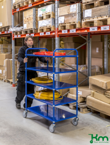 Etage(n) aus Metall. Etage(n) mit Schutzkante, gerade. Gestell elektrolytisch verzinkt. Stahlkonstruktion. Leicht zu manövrieren und verfahren durch 4 Lenkrollen. Rad Ø 125 mm. Räder mit bodenschonender TPE-Bereifung auf bruchsicherer und robuster Polypropylen-Felge. Naben mit Präzisionskugellager. Gehäuse aus Stahl.Unser Kundenservice-Team steht Ihnen gerne zur Verfügung.