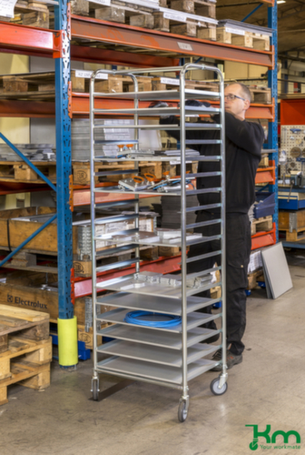 "description": "Tragl. 150kg, 18 Etage(n), Tablettablage, silber, PU-Bereifung",