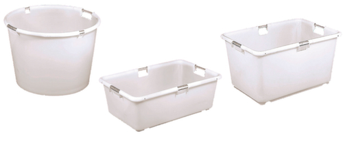 "title": "Konischer Behälter mit Alurohr-Rahmen, weiß, Inhalt 106 l",