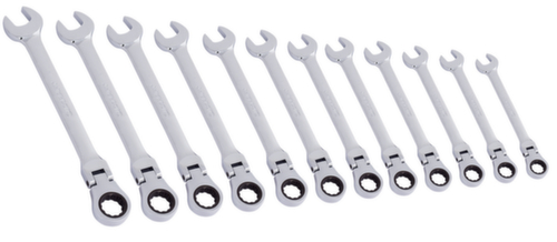 "longDescription": "Clickraft Ratschen-Ring-Maulschlüssel-Satz, flexibel, 12-tlg.<br>- In schlankem Werkzeugkoffer<br>- 8-9-10-11-12-13-14-15-16-17-18-19 mm<br>- Hochwertiger 72 Zahn Ratschen-Mechanismus<br>- 5° Rückstellwinkel<br>- Hochglanz verchromt <br>- Chrom Vanadium<br><br>",