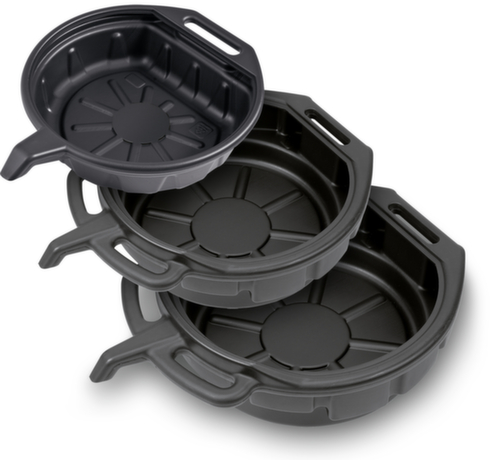 "longDescription": "Ölauffangwannen-Set, 3-tlg.<br>- Mit Ausgießer<br>- Beständig gegen die meisten Lösungsmittel (T < 60 °C), Säuren, Laugen, Alkohol, Öl, Benzin<br>- Aus HDPE gefertigt<br>- Schlagfest<br><br>",