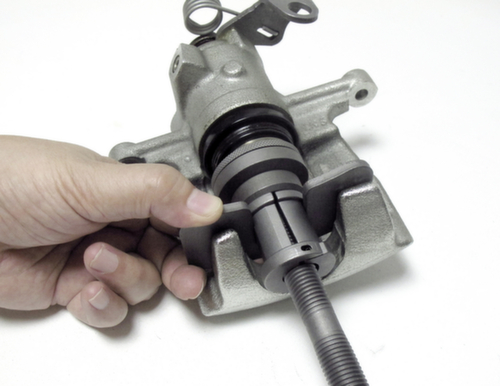 "longDescription": "Universal-Bremskolben-Rückstell-Satz, 7-tlg.<br>- Satz mit einer Zweiwege-Spindel<br>- 2-Stift- und 3-Stift-Universal-Bremskolbenadapter<br>- Ideal zum Drücken und Ziehen des Bremskolbens an schwimmenden Bremssattelsystemen<br>- Für Systeme mit oder ohne Handbremssicherung <br>- Zentrale Rückstellung ohne Kippen<br>- Während der Bearbeitung Bremskolben zurückschieben<br><br>",