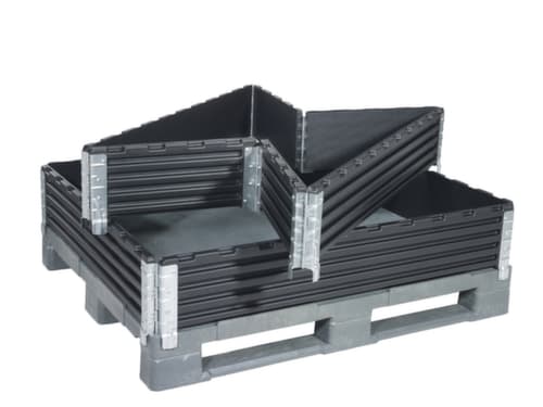 "longDescription": "<h2>Kunststoff-Aufsatzrahmen</h2><strong>individuell stapelbar</strong><br><ul><li><strong>Platzsparender Transport</strong> - einfach zusammenklappbar</li><li><strong>Robust und langlebig</strong> - Rahmen aus ABS</li><li><strong>Absolut stabil</strong> dank ineinander greifenden Verstärkungen</li><li><strong>Zur Ablage im Palettenmaß</strong> - mit 4 Scharnieren</li></ul><br>Dieser Palettenaufsatzrahmen ist für Industrie- und Euro-Paletten geeignet. Er ist aus stabilem 20 mm starkem ABS mit zusätzlichen ineinander greifenden Verstärkungen gefertigt. Die einzelnen Elemente sind individuell stapelbar und für den Transport einfach zusammenklappbar. Wahlweise ist der Rahmen mit vier oder sechs diagonalen Scharnieren erhältlich.<br><br>Mit sinnvollem Zubehör können Sie den Aufsatzrahmen genau auf Ihre Bedürfnisse zuschneiden. Teiler ermöglichen es Ihnen ihr Lagergut innerhalb einer Palette zu unterteilen. Ein Deckel aus recyceltem ABS schützt den Inhalt vor Schmutz oder unbefugten Blicken. Mit Stapelecken können Sie auf dem Rahmen weitere Paletten stapeln. <br><br><strong>Anlieferung!</strong><br><ul><li>Die Anlieferung erfolgt zerlegt - einfache Selbstmontage</li></ul><br><strong>Gut zu wissen!</strong><br><br>Die Aufsatzrahmen werden in einer kostengünstigen Verpackungseinheit von zwei Stück geliefert. Die Anlieferung erfolgt zerlegt zur einfachen Selbstmontage.<br>",