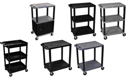 "longDescription": "<h2>Kunststoff-Etagenwagen</h2><strong>feuchtigkeitsresistent und stoßfest</strong><br><ul><li><strong>Umweltfreundlich und robust</strong> - aus recycelbarem Polyethylen</li><li><strong>Sicherer Transport</strong> - rutschhemmende Ladefläche</li><li><strong>Einfach zu bewegen</strong> durch 4 Lenkrollen, 2 davon mit Feststellern</li></ul><br><strong>Sie haben die Wahl:</strong><br><ul><li><strong>Noch sicherer Transport</strong> - wahlweise mit Wannenböden oder zusätzlichem Schrank</li></ul>",