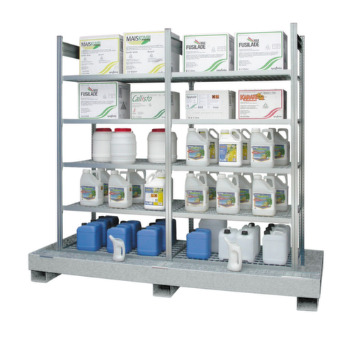 Zur vorschriftsgemäßen Kleingebindelagerung wassergefährdende und brennbare Stoffe unter Dach. Stecksystem - zur einfachen und werkzeuglosen Montage.