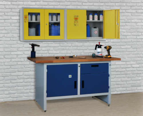 "longDescription": "<h2>Lacont Umwelt-Wandschrank storeLAB UWS-H 800 GL</h2><h3>für die vorschriftsmäßige Kleingebinde-Lagerung</h3><p>Zur ordnungsgemäßen Lagerung wassergefährdender Stoffe, zur Lagerung unter Dach. </p><strong>Die wichtigsten Maße des Lacont Umweltschrankes storeLAB UWS-H 800 GL auf einen Blick:</strong><ul><li>Für Kleingebinde</li><li>Höhe x Breite x Tiefe 600 x 800 x 300 mm</li><li>Höhe x Breite x Tiefe innen 595 x 795 x 275 mm</li></ul><p>Konstruktion aus Qualitätsstahlblech. Doppel-Flügeltür mit Sichtfenster. Sicher verschließbar mit Zylinderschloss. Türanschlag beidseitig. Türen mit hoher Stabilität durch Türverstärkung. </p><strong>Ausstattung:</strong><ul><li>1 Ebene(n) mit Fachboden, unten 1 Ebene mit Auffangwanne</li><li>Traglast je Ebene 25 kg</li><li>Auffangvolumen Bodenwanne 10 l</li></ul><p>Bodenwanne mit Ü-Zeichen gemäß StawaR. Korpus mit schlag- und kratzfester Pulverbeschichtung in RAL7035 Lichtgrau, Front mit schlag- und kratzfester Pulverbeschichtung in RAL1018 Zinkgelb. Ebenen verzinkt mit schlag- und kratzfester Pulverbeschichtung in RAL7035 Lichtgrau. </p><ul><li><strong>Lieferumfang:</strong> inklusive Montagematerial</li></ul>",
