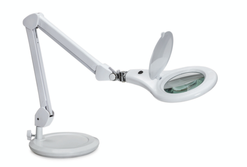 "description": "kaltweiß, E, Lupe 3dpt, Kopf schwenkbar/Arm drehbar, Arm L 600mm, Standfuß, Metall, schwarz",