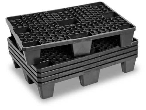"description": "PE-Regenerat, HxLxB 140x800x600mm, Tragl. stat. 3000kg, 9 Füße, Oberdeck geschlossen",