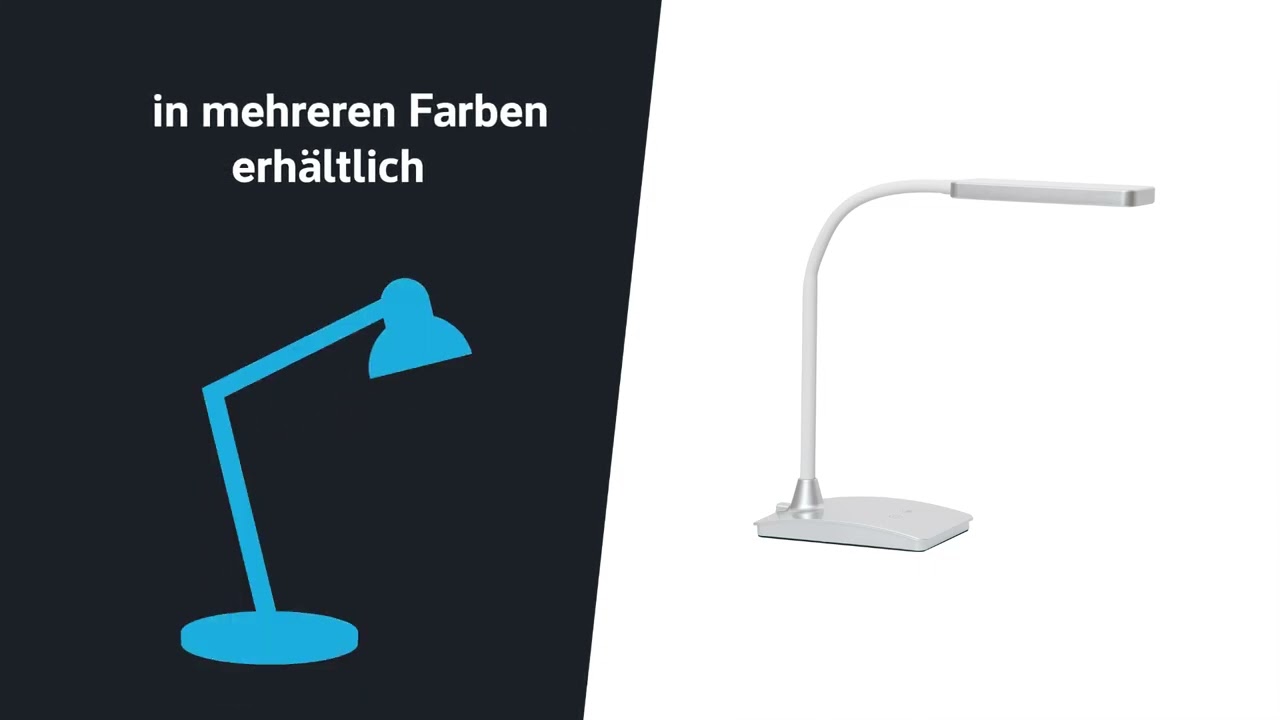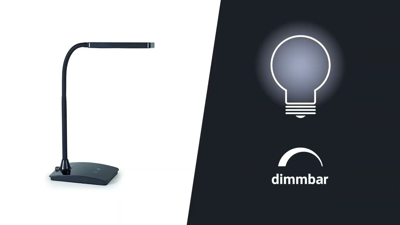Arm mit Flexbereich zur Einstellung des Leuchtwinkels, Armlänge 357 mm. Ausgestattet mit Touchfeld am Leuchtenfuß. Aufstellung mit Standfuß, Fuß Länge x Breite 165 x 106 mm. Aus Stahl/Kunststoff in schwarz.