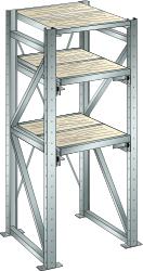 Grundregal mit 2 Ständerrahmen, 2 Auszugböden, 1 Kopfboden, Diagonalverstrebungen, Bodenverankerung und Bodenausgleichsplatten-Set