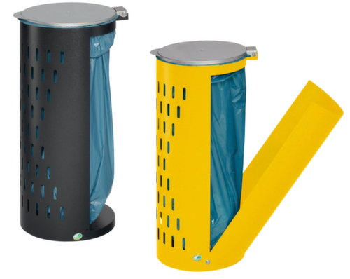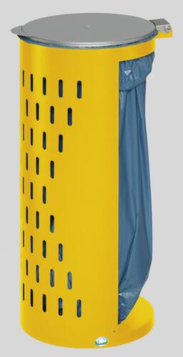 "title": "Lochblech-Müllsackständer, für 120-Liter-Säcke, RAL1023 Verkehrsgelb, Deckel silber",