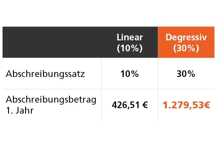 Unternehmen können Anschaffungen jetzt degressiv mit bis zu 30 % pro Jahr steuerlich geltend machen.