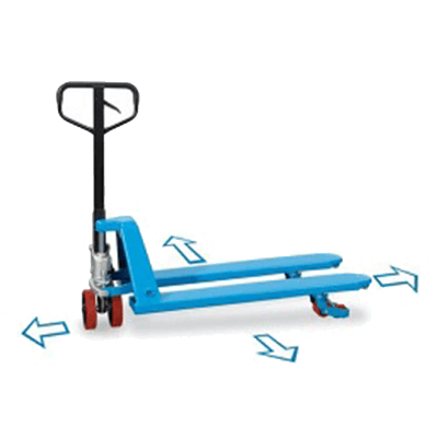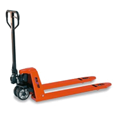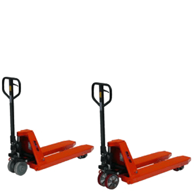 Bei uns finden Sie Palettenhubwagen mit einer Traglast von bis zu 5.000 kg und unterschiedlichen Gabellängen von 0,45 Meter bis hin zu 2,5 Meter im Sortiment.