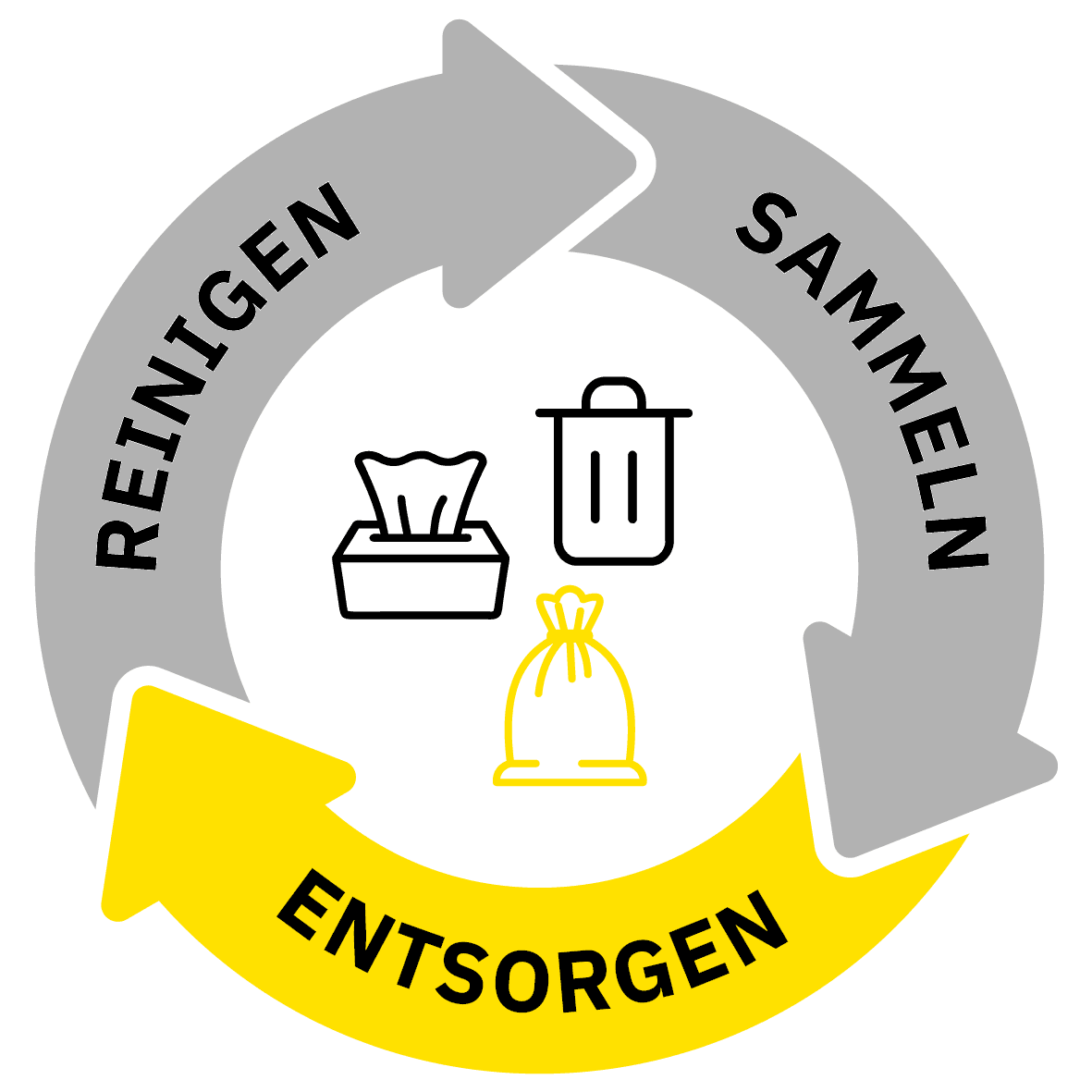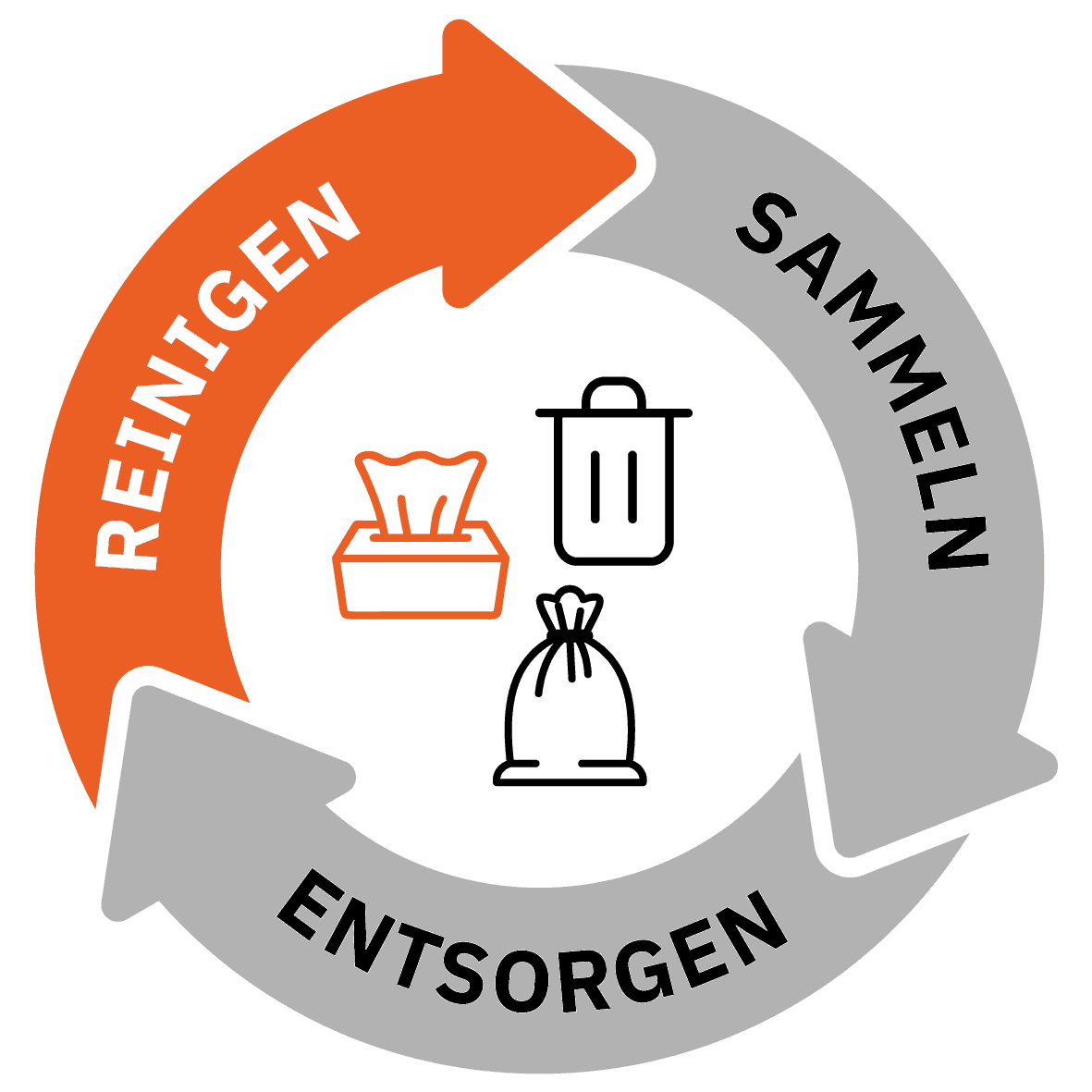 Von der Reinigung über die Sammlung bis hin zur Entsorgung bieten wir Ihnen durchdachte Produkte, die perfekt ineinandergreifen und einen geschlossenen Kreislauf bilden. So stellen wir sicher, dass Sie in jedem Schritt des Prozesses die passende Lösung an Ihrer Seite haben – effizient, zuverlässig und aus einer Hand.
