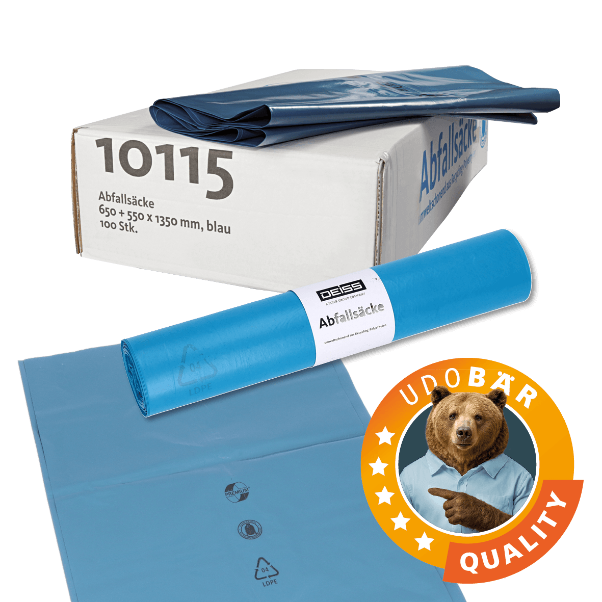 Die reißfesten UDO BÄR Abfallsäcke sorgen in Büro und Industrie für zuverlässige, hygienische Entsorgung – belastbar, in verschiedenen Größen und Stärken.