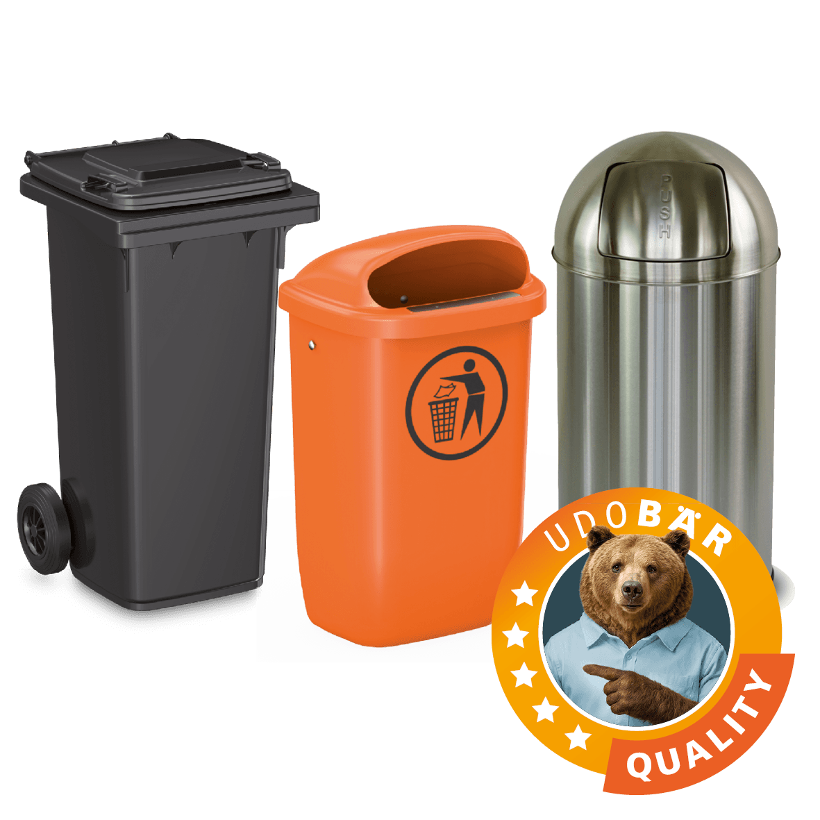 Mit den stabilen UDO BÄR Abfallbehältern entsorgen Sie Abfälle sofort – praktisch, robust und hygienisch für jeden Arbeitsplatz.