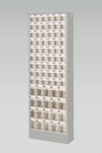 "metaDescription": "Magazinschrank mit Klappkästen, 74 Kästen, transparent - HxBxT 1820x634x200mm, 74 Kästen, Gehäuse lackiert",