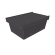 Aus Polypropylen-Regenerat. Das Lagergut lässt sich durch die geschlossenen Wände vor Staub geschützt lagern und der Behälter lässt sich leicht reinigen. Boden geschlossen. Zweiteiliger Klappdeckel in schwarz. Deckel aus Neugranulat. Mehrfach stapelbar. Mit offenem Deckel ineinander stapelbar.
