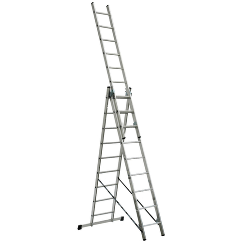 "metaTitle": "Dreiteilige Mehrzweck-Teleskopleiter, 3 x 9 rutschsicher profilierte Sprossen - Mehrzweckleitern",