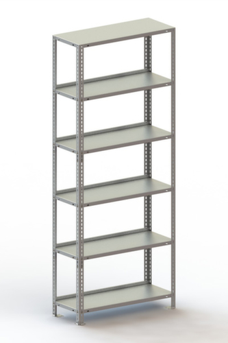 Für Ihre Sicherheit: nach DIN EN 15635 müssen Fachbodenregale ab einer 4-fachen Höhe zur Regaltiefe (Verhältnis 4:1) am Boden befestigt und gesichert werden. Die angegebenen Fachlasten gelten bei gleichmäßiger Lastverteilung. Zusätzliche Böden/Ebenen sind als Zubehör erhältlich und bis zur max. Feldlast erweiterbar.