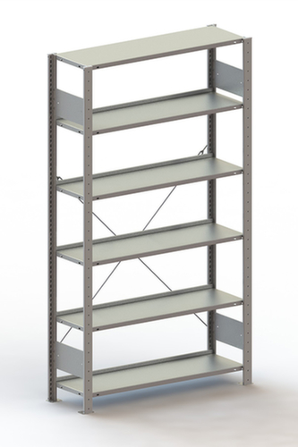 Für Ihre Sicherheit: nach DIN EN 15635 müssen Fachbodenregale ab einer 4-fachen Höhe zur Regaltiefe (Verhältnis 4:1) am Boden befestigt und gesichert werden. Die angegebenen Fachlasten gelten bei gleichmäßiger Lastverteilung. Zusätzliche Böden/Ebenen sind als Zubehör erhältlich und bis zur max. Feldlast erweiterbar.
