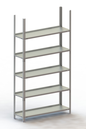 Die wichtigsten Maße des META Lagerregals auf einen Blick:5 Ebene(n) mit Stahlboden. Ebenen mit Anschlagkante gegen das Herausfallen von Ware und Sicherheitskantung zum Schutz vor Verletzungen. Nutzung einseitig - zur Aufstellung an der Wand konzipiert. Hohe Stabilität in Längs- und Tiefenrichtung. Konstruktion aus Stahl, Ständer mit korrosionsschützender Zinkbeschichtung, Ebenen mit korrosionsschützender Zinkbeschichtung.