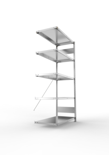 Anbauregal mit 1 Ständerrahmen, Diagonalverstrebungen und Ebenen gem. Angebot