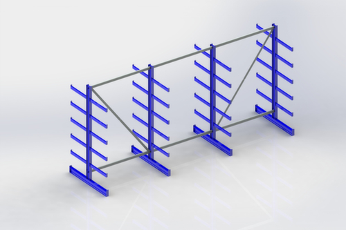 Die wichtigsten Maße des META Kragarmregals Atlas ST auf einen Blick:Nutzung beidseitig - flexible Aufstellung frei im Raum möglich. 6 Lagerebenen. 5 Ebene(n) mit Kragarm, mit Abrollsicherung. Traglast je Arm 200 kg. Gleich lange Arme, gerade ausgerichtet. Nutztiefe 500 mm. Konstruktion aus Stahl. Ständer sandgestrahlt mit Pulverbeschichtung in RAL5010 Enzianblau. Kragarme sandgestrahlt mit Pulverbeschichtung in RAL5010 Enzianblau.