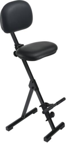 Die wichtigsten Maße des meychair Sitz-Steh-Hockers Assistent Futura AF-SR auf einen Blick:Rückenbezug aus Kunstleder (58% Polyurethan, 4% Viskose (Rayon), 38% Polyester (+/- 10%)) in schwarz. Rücken pendelnd gelagert und höhenverstellbar. Sitz Sitz und Rücken gepolstert. Höhenverstellung durch Handrad. Stehhilfe mit höhenverstellbarer Aufstiegshilfe ausgestattet. Gestell aus Stahl in schwarz. Gestell mit bodenschonenden Gleitern. Sitz klappbar.
