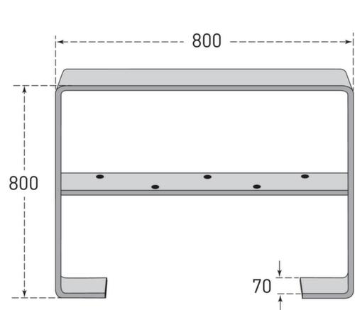 Aus Stahl feuerverzinkt mit Beschichtung in DB703 anthrazit. Nutzung beidseitig. Flachstahlkonstruktion. Ausgestattet Durch das Knierohr können sowohl Räder als auch zum Beispiel Scooter angelehnt werden. Das Knierohr ist mit vorgebohrten Löchern zur Aufnahme von Halteschellen versehen. Zum Aufdübeln.