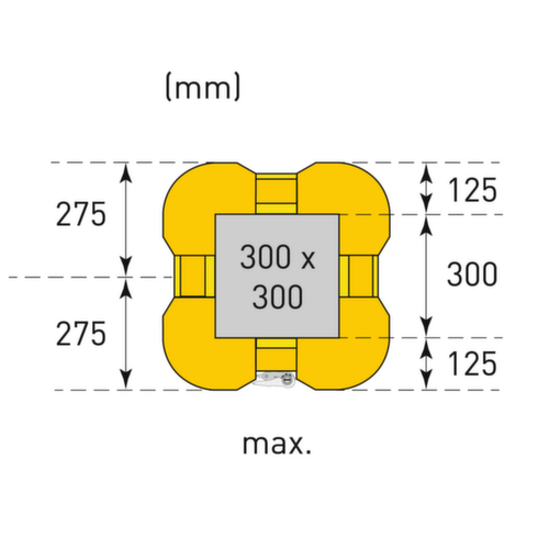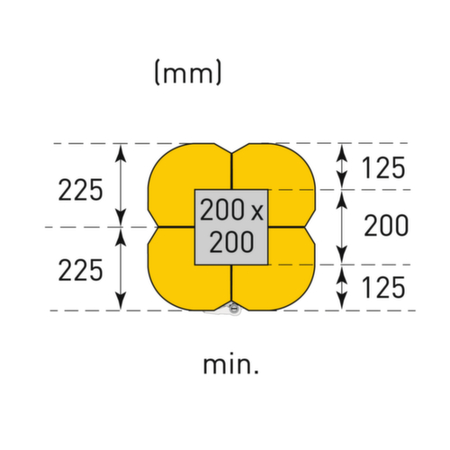 "description": "f. innen, HxBxT 1100x450-550x450-550mm, PE, gelb, zur Befestigung mit Spanngurt",