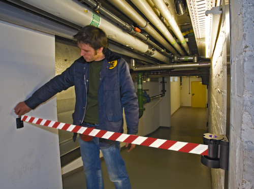 "longDescription": "<h2>Wandgurt</h2><strong>für vorübergehendes Sperren in unterschiedliche Richtungen</strong><br><ul><li><strong>In alle Richtungen</strong> - Gurtkassette in 3 Stellungen fixierbar, sodass der Gurt auch seitlich ausziehbar ist</li><li><strong>Kontrollierte Gurtrückführung</strong> durch integrierte Fliehkraftbremse</li><li><strong>Robuste Wandhalterung</strong> - aus ABS</li></ul><br><strong>Sie haben die Wahl:</strong><br><ul><li><strong>Flexibel oder ortsfest</strong> - magnetische Halterung oder zum Anschrauben</li></ul><br><strong>Direkt mitbestellen:</strong><br><ul><li><strong>Feste Verbindung zur Wand</strong> - Wandclip zur Gurtaufnahme</li><li><strong>Erweiterte Absperrung</strong> - Gurtverbinder</li></ul>",