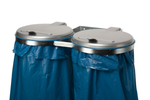 "longDescription": "<h2>Müllsackhalter</h2><strong>platzsparend dank Wandbefestigung</strong><br><ul><li><strong>Stabil und robust</strong> - Gestell aus Stahl</li><li><strong>Einfach entsorgt</strong> - mit Klemmring zur Müllsackbefestigung</li></ul><br><strong>Sie haben die Wahl:</strong><br><ul><li><strong>Einfache Mülltrennung</strong> - mit bis zu 2 Sammeleinheiten</li><li><strong>Korrosionsbeständig oder schlag- und kratzfest</strong> - Gestell verzinkt oder mit Pulverbeschichtung</li><li><strong>Noch robuster</strong> - Deckel aus Stahl</li></ul><br>Den Müllsackhalter zur Wandbefestigung für 120 Liter-Säcke gibt es als Einzel- oder Doppel-Sammler, mit Kunststoffdeckeln zum leichten Abwischen und Reinigen oder mit robusten Stahldeckeln. Alle Müllsackwandhalter sind mit Klemmring zur Befestigung der 120-Liter-Müllsäcke.<br>",