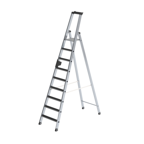 "metaDescription": "MUNK Stehleiter - einseitig, 9 Stufen m. R13-Belag, Stand H 2,11m, Holm L 2,76m, Alu",