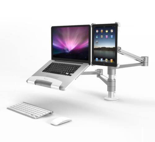"longDescription": "<h2>Notebook-Halter</h2><ul><li>Aus Aluminium, recyclebar</li><li>Von +90° bis -55° neigbar, von +65° bis -65° schwenkbar, mit integrierter Schwenkblockade</li><li>Aktionsradius 360°</li><li>Höhenverstellbar um 240 mm</li><li>Schnellverschluss-VESA System zur einfachen Befestigung des Bildschirmes</li><li>Inkl. Tischklemme für Plattenstärken bis 40 mm und mit Durchtischbefestigung für Plattenstärken bis 50 mm</li><li>Tragkraft bis 7 kg</li></ul>",