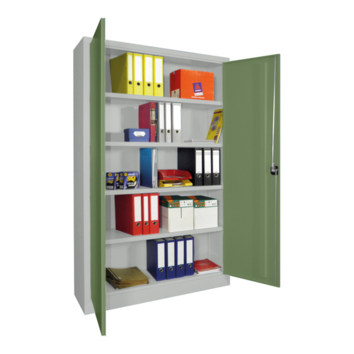 Die wichtigsten Maße des PAVOY Universalschrankes Basis auf einen Blick:Der Schrankkorpus ist aus Stahlblech gefertigt und stabil verschweißt. Das macht die Konstruktion besonders robust und widerstandsfähig und somit langlebiger. Die verschweißten Ecken und Kanten des Korpus gewährleisten eine höhere Dichtigkeit und somit eine bessere Schutzfunktion gegen Staub, Feuchtigkeit und Schmutz als eine geschraubte Konstruktion. Zudem sind keine regelmäßigen Wartungsarbeiten und Nachjustierungen nötig. Hohe Flexibilität der Inneneinrichtung durch Verstellbarkeit der Fachhöhen im Raster von 17 mm. Ausgestattet mit Böden. Über die Doppelflügeltür ist der Zugriff auf den Schrankinhalt besonders komfortabel. Die innenliegenden Drehbolzen der einschlagenden Türen bieten den Vorteil einer sauberen Optik, da keine Schrauben oder Scharniere von außen sichtbar sind. Dadurch wird das Design des Schrankes nicht beeinträchtigt und das gesamte Möbelstück wirkt hochwertiger. Damit ist auch die glatte Oberfläche leichter zu reinigen, da keine Schmutz- oder Staubablagerungen an unzugänglichen Stellen zu befürchten sind. Durch das innenliegende Kastenprofil werden die Türen zusätzlich verstärkt. Verschließbar mit robustem Drehgriff-Zylinderschloss. Griff und Schloss in einem für eine einfaches und schnelles Öffnen und Schließen. Die 3-Punkt-Verriegelung bietet hohe Stabilität und einen effektiven Einbruchschutz. Der untergebaute Sockel sorgt dafür, dass das Gewicht des Schrankes gleichmäßig auf dem Boden verteilt wird. Dies erhöht die Stabilität und der Schrank kann schwerer Lasten aufnehmen, als ein Schrank mit Füßen. Außerdem können Schmutz, Staub und Feuchtigkeit nicht unter den Schrank gelangen, was die Reinigungsfläche verkleinert.
