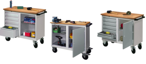 "title": "PAVOY Mobile Werkbank in lichtgrau, 1 Schrank, 2 Ablageböden",