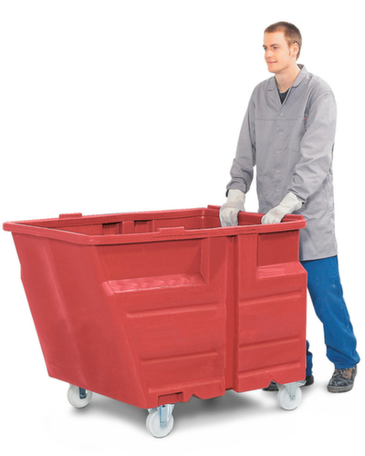"metaDescription": "PE-Kippbehälter - HxLxB 900x1260x960mm, 0,6m³, Tragl. 300kg, rot, Rollen",