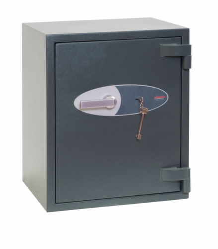 Ausstattung: Boden. Mit Flügeltür. Verschließbar mit Hochsicherheits-Doppelbartschloss der VdS-Klasse I. Verriegelung über 3-Wege-Winkelverriegelungsbolzen und sorgt somit für hohe Robustheit. Konstruktion aus Stahl. Korpus mit kratzfester Beschichtung in RAL7024 Graphitgrau. Front mit kratzfester Beschichtung in RAL7024 Graphitgrau. Vorbereitet zur Bodenverankerung.