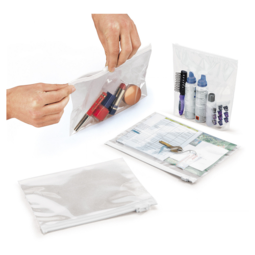 "longDescription": "<h2>PP Beutel mit Schiebeverschluss</h2><h3>Schnell verschließen mit Hochglanzoptik</h3><ul><li><strong>Mit integriertem Plastikschieber</strong><br/>zum Öffnen & Verschließen</li><li>Inhalt schnell und einfach griffbereit</li><li>2 Varianten: flache Beutel & Beutel mit Bodenfalte</li><li>Hochglanzoptik</li></ul>Dieser Beutel mit Schiebeverschluss ist nicht nur ideal zur Aufbewahrung von Kleinteilen und Reiseutensilien, sondern wertet dessen Inhalt durch die <strong>Hochglanzoptik</strong> deutlich auf. Daher ist er bestens geeignet zur <strong>Präsentation</strong> von Prospekten, Kleidungsstücken und Kosmetikartikeln. Außerdem ist der Inhalt zuverlässig vor Staub und Feuchtigkeit geschützt.<br/><ul><li>Material: PP, 75 µ</li><li>Tipp: <strong>Bestellnr.: 287539 ist ideal für Flugreisen innerhalb EU geeignet: 1 Liter</strong></li></ul><br>",