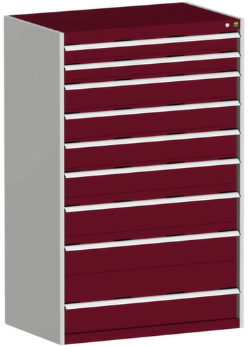 bott Schubladenschrank cubio Grundfläche 1050x650 mm, 9 Schublade(n), RAL7035 Lichtgrau/RAL3004 Purpurrot