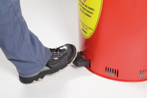 "longDescription": "<h2>Putzlappen-Entsorgungsbehälter</h2><strong>sicheres Öffnen durch rutschhemmendes Fußpedal</strong><br><ul><li><strong>Schutz vor Funkenflug und entstehenden Bränden</strong> durch selbstschließenden Deckel</li><li><strong>Besonders leise</strong> - Deckel schließt gedämpft und nahezu geräuschlos</li><li><strong>Problemlos umzustellen</strong> durch Griff an der Rückseite</li><li><strong>Gegen Erwärmung und Selbstentzündung</strong> mit gelochtem Bodenrand ausgestattet</li><li><strong>Einfache Entleerung</strong> über Deckel</li></ul>",