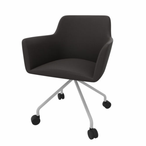 Ideal zum Einsatz in Wartebereichen, Besprechungs- und Konferenzräumen oder sonstigen Büroumgebungen. Dank der einzigartigen Verbindung von Praktikabilität mit künstlerischer Eleganz finden Sie in den Stühlen der Serie City Ihren passenden Besucherstuhl. 4-Fußgestell mit 4 Rollen aus Rundrohr-Stahl verchromt. Ausgestattet mit starren Armlehnen. Sitzschale aus PU-Schaum in dunkelbraun.