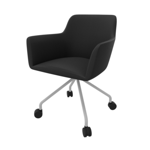 Ideal zum Einsatz in Wartebereichen, Besprechungs- und Konferenzräumen oder sonstigen Büroumgebungen. Dank der einzigartigen Verbindung von Praktikabilität mit künstlerischer Eleganz finden Sie in den Stühlen der Serie City Ihren passenden Besucherstuhl. 4-Fußgestell mit 4 Rollen aus Rundrohr-Stahl verchromt. Ausgestattet mit starren Armlehnen. Sitzschale aus PU-Schaum in schwarz.