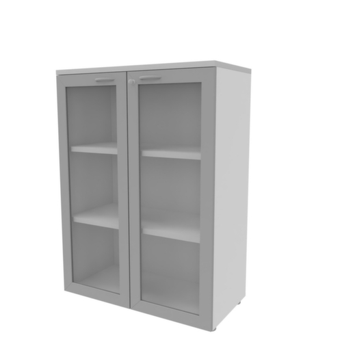 Quadrifoglio Glastürenschrank Practika, 3 Ordnerhöhen, Korpus weiß/grau