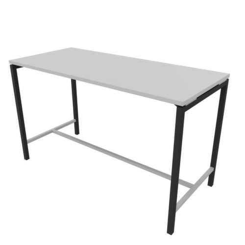 Plattenform eckig. 4-Fußgestell mit Quer- und Längsstreben aus 40 x 40 mm Vierkantstahlrohr mit Epoxidpulverbeschichtung in dunkelgrau. Traversen silber. Nivellierfüße sorgen durch den Ausgleich von Unebenheiten für einen stabilen Stand. Platte aus Holzwerkstoffplatte mit kratzfester und pflegeleichter Melaminharzbeschichtung in Dekor grau. Plattenstärke 30 mm. Alle Kanten sind durch schlagfeste ABS-Umleimer vor unschönen Rissen und Ausbrechen geschützt.