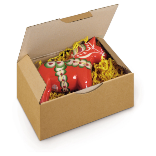 Die wichtigsten Details auf einen Blick:Für Packstücke bis 20 kg. Hohe Stabilität durch 3-fache Kartonstärke an beiden Längsseiten. 2 seitliche Klappen zum Fixieren und Schützen der Ware. Wirkt Widerstandsfähig gegen Feuchtigkeit und Temperaturschwankungen. Verschließbar mit Klappdeckel mit Verschlusslasche.