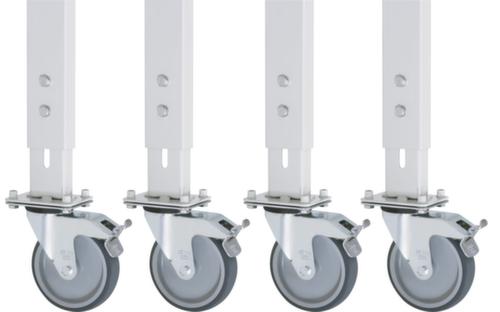 "longDescription": "<h2>Rollensatz</h2><strong>spurlos und bodenschonend</strong><br><ul><li>Geringer Anfahrwiderstand - Rad mit thermoplastischer Gummi-Bereifung</li><li>Radkörper aus Polypropylen</li><li>Sichere Ausstattung - Lenkrollen mit Feststeller</li></ul>",